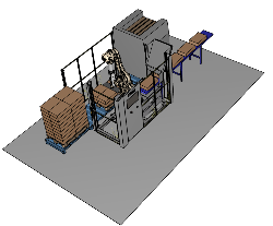 pallet PACker mit angetriebener Rollenbahn und Leerpalettenmagazin. |